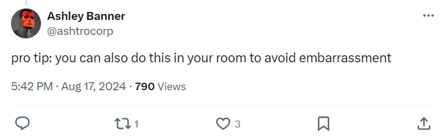 All roads lead to you sharing whatever your new thing is with other people. An audience will be present at the times of utmost importance, and you can’t let that stupid idea in your head, that they’re thinking that deeply about you, take over.